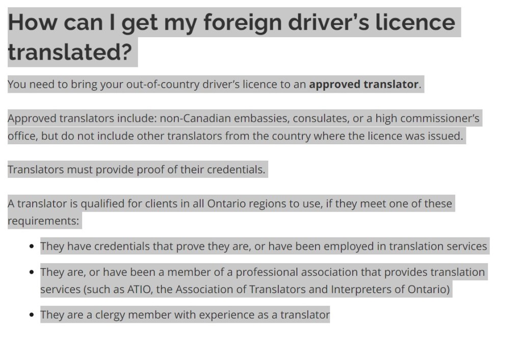 安省驾照翻译(适用于大多伦多地区,渥太华,滑铁卢,温莎,伦敦等居民),请发送邮件到 translation@lxtranslation.ca